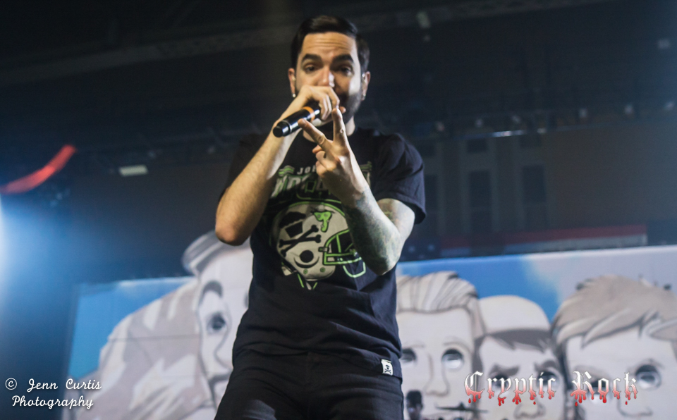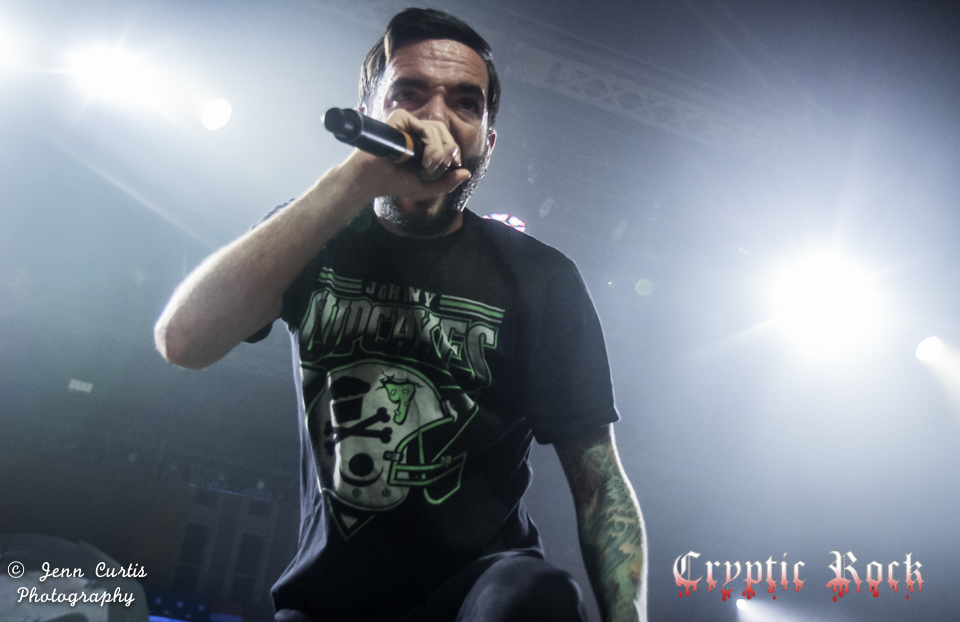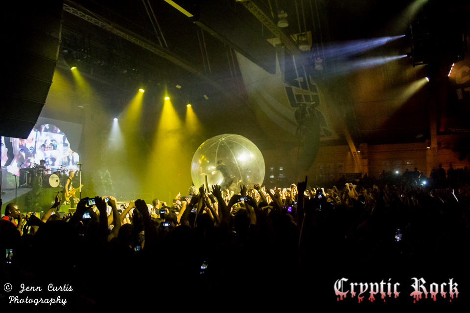They kicked off their set with the high energy song “The Downfall of Us All” that always seems to encourage a massive sing-along with the audience. When MiKinnon screamed “FIGHT!” to start off “2nd Sucks”, the entire crowd appeared to leave their feet and take the moshing to the next level with more crowd surfers than there appeared to be all night, as well as the start of a massive circle pit. Other heavy favorites in the set list included “Violence (Enough is Enough” and “Dead and Buried” off of their self- released album Common Courtesy and “You Be Tails, I’ll be Sonic” off of the 2010 release What Separates Me From You. Then the infamous hamster ball came out as “Homesick” started and MiKinnon took a brief trip across the top of the crowd running around before returning to the stage to sing his part. Fittingly they closed their set with the fan favorite “All I Want”, which had every fan in the building cheering at the height of exhaustion.