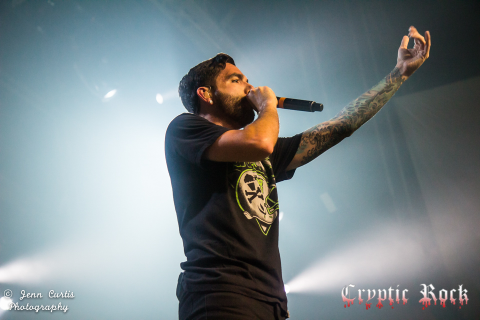 Ready to get the evening going on a high note, Motionless in White took the stage first to an amped-up crowd. Theatrically appealing, they came out with faces painted and energy at a maximum, ready to give fans everything they hoped for and more. Starting off with their song “Immaculate Misconception” from their 2011 album Creatures, they also played “Abigail” from that album later in the evening. Raising the noise level a few notches, lead vocalist Chris Motionless announced the next song would be the single and title track from their new Reincarnate. Certainly a hit with the audience, Motionless In White’s third studio album could possibly be their biggest to date. They closed out the set with the ever popular “A-M-E-R-I-C-A” off of their 2012 release Infamous which really got the crowd off their feet and passionately screaming along with every line. Do not miss this ever progressngn adrenaline rush of a band mixing fun and thoughtful lyrics together.