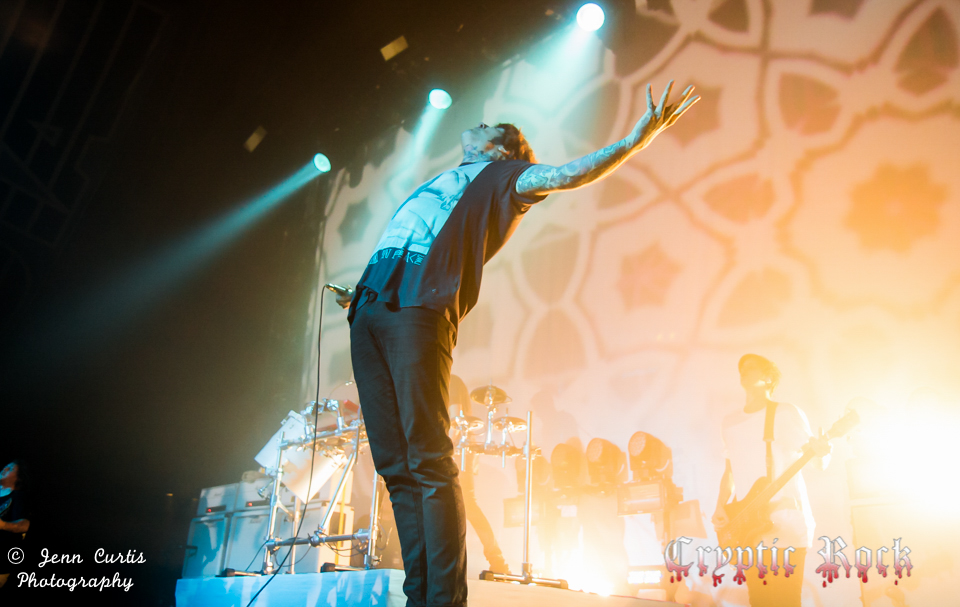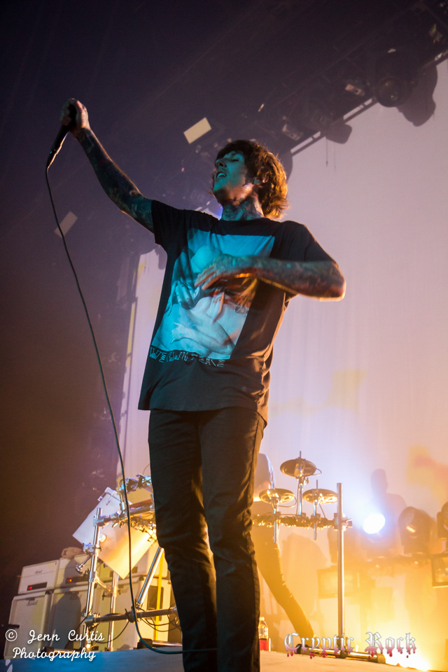 The ground began to vibrate as the entrancing music of UK’s Bring Me the Horizon began. That swell of emotion certainly continued to grow until it felt as though the entire building was shaking when they kicked off their set with “Shadow Moses”. Becoming a signature live song for the group since its release on the Alternative Press Album of the Year Sempiternal (2013), it is quite popular because the end of the song gives fans a chance to scream, “THIS IS SEMPITERNAL” angrily alongside vocalist Oliver Sykes. Bring Me the Horizon is a band that can command an audience with an explosive show all the way through, which they most certainly did. With raw emotion painted on Sykes face during “Go to Hell, For Heaven’s Sake” seemed to draw the crowd in even further to the intense grasp of the band’s clutches.
