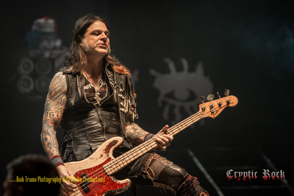 In keeping with the Alice Cooper tradition, the beheading was followed by the “I Love the Dead” off of 1974’s Billion Dollar Babies and the executioner paraded his severed head around, even pausing a moment to give it a big kiss. Then without a warning a school bell rang for “School’s Out.” Cooper returned, head intact, and managed to include a little bit of Pink Floyd’s “Another Brick in the Wall.” As bubbles and confetti-filled balloons filled the air, fans grabbing at them to hold for Cooper as he sliced at them with his saber, bringing the set to a festive holiday close, but all through the house so many creatures were stirring it just could not be over. That is when it started to snow and all of the other artists of this lineup returned for one huge Christmas spirited cover of the Beatles’ “Revolution” with Night Ranger’s Blades joining Cooper on lead vocals. It was a fun filled finale with countless solos and snowball fights before Cooper brought it to a close shouting “All right!” waving his hands and saying “To all a goodnight.” A goodnight indeed, and all for a good cause, now that is what Christmas is all about.