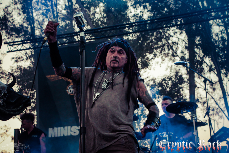 It seemed almost fitting that the sun was setting around the 8 PM hour when Uncle Al and Ministry were ready to deliver their brand of Industrial Rock. A matter of fact, some may argue without bands like Ministry there would be no Industrial Rock. The brainchild of Al Jourgensen, Ministry has withstood their share of changes through the years, but still have remained dedicated to a distinct artistic vision – raw, harsh, Industrial-laden Metal.