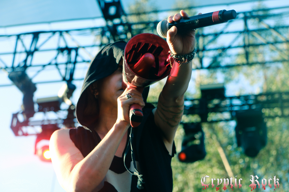 A sunny and warm afternoon, it all kicked off around 1:30 PM with Ritual, Ghoul around 2 PM, before Combichrist took over just before 3 PM. The vision of Norwegian native Andy LaPlegua, Combichrist has been quite active in recent years following the release of We Love You in 2014, leading into This Is Where Death Begins in 2016. Touring regularly to venues big and small, LaPlegua and company were ready to light up the crowd.