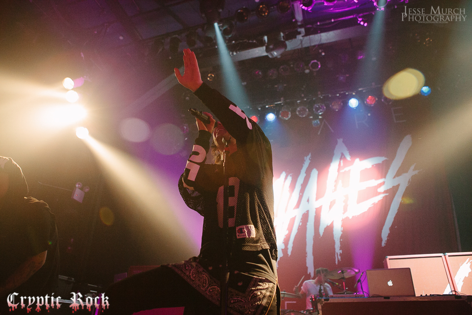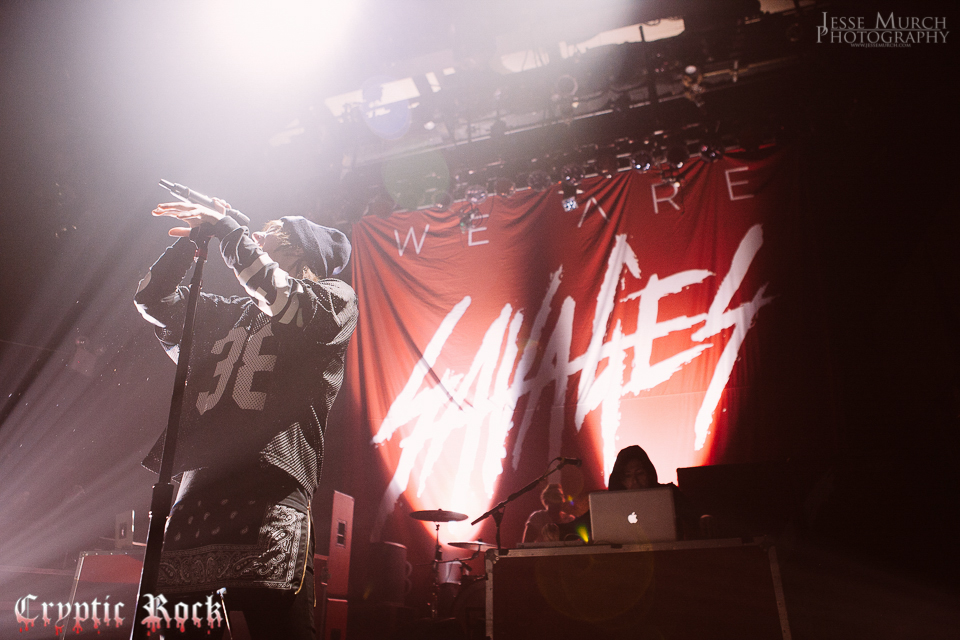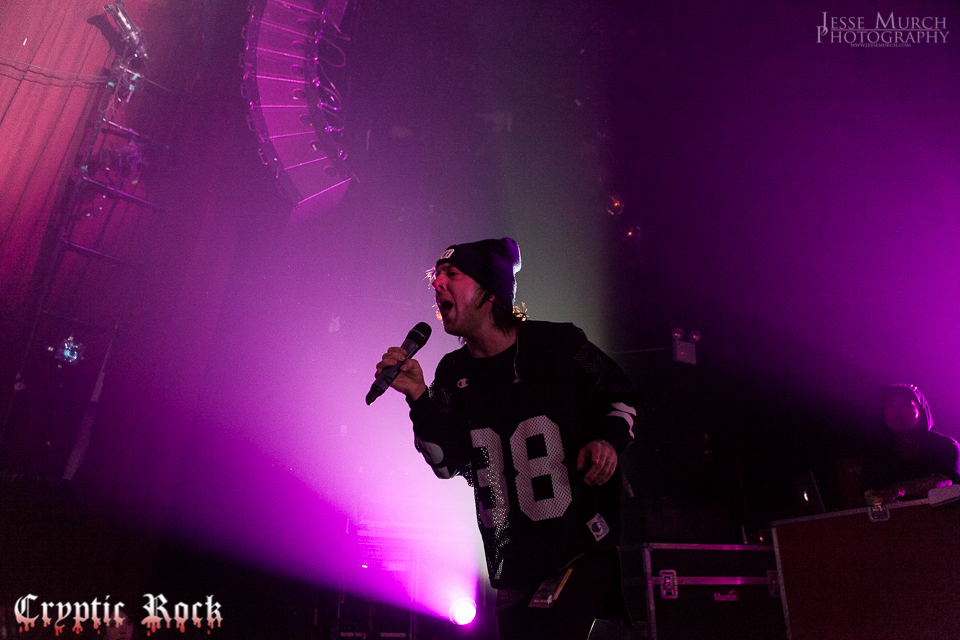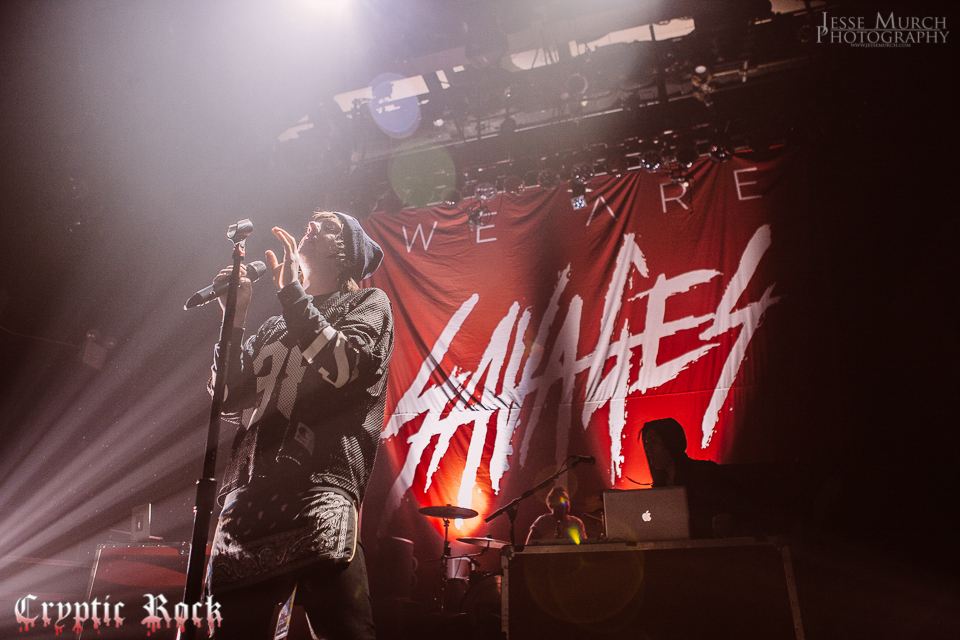 Starting things off with a bang, Breathe Carolina opened with new song “Savages”. The lights were low while lasers and strobes scanned the crowd as frontman Schmidt hopped around on stage with the band behind him. The crowd danced along while singing all of their favorites and it appeared the band has not skipped a beat and are excelling forward. Fans were pleased with the balanced delivery of a good variety of songs from all of their albums including some new material from Savages.