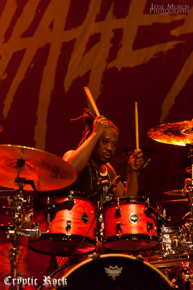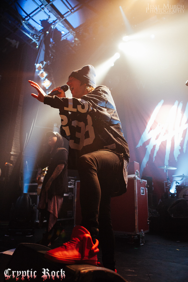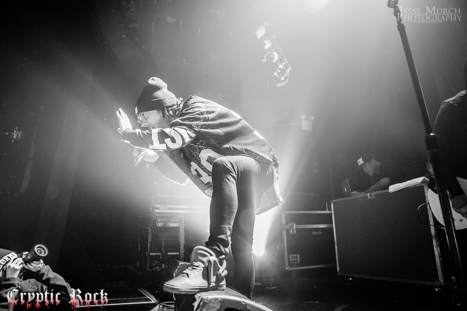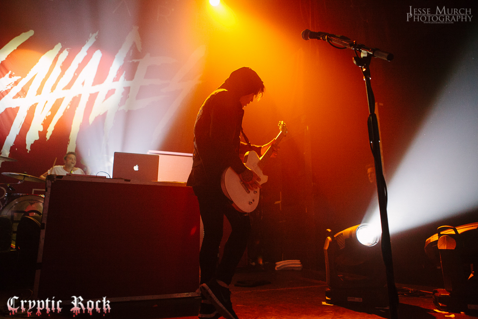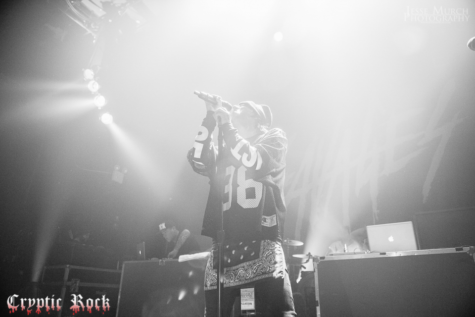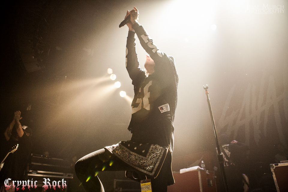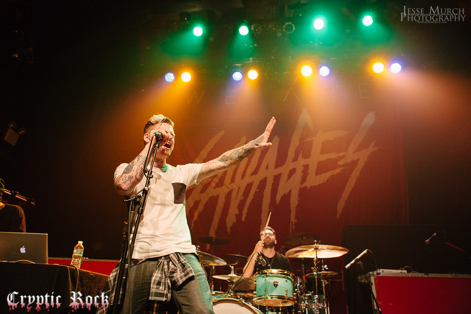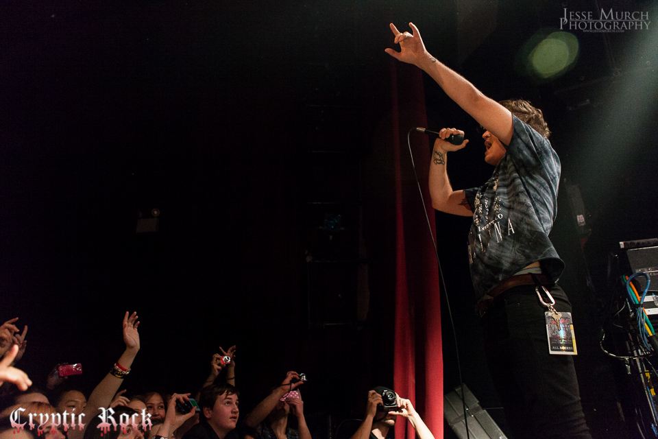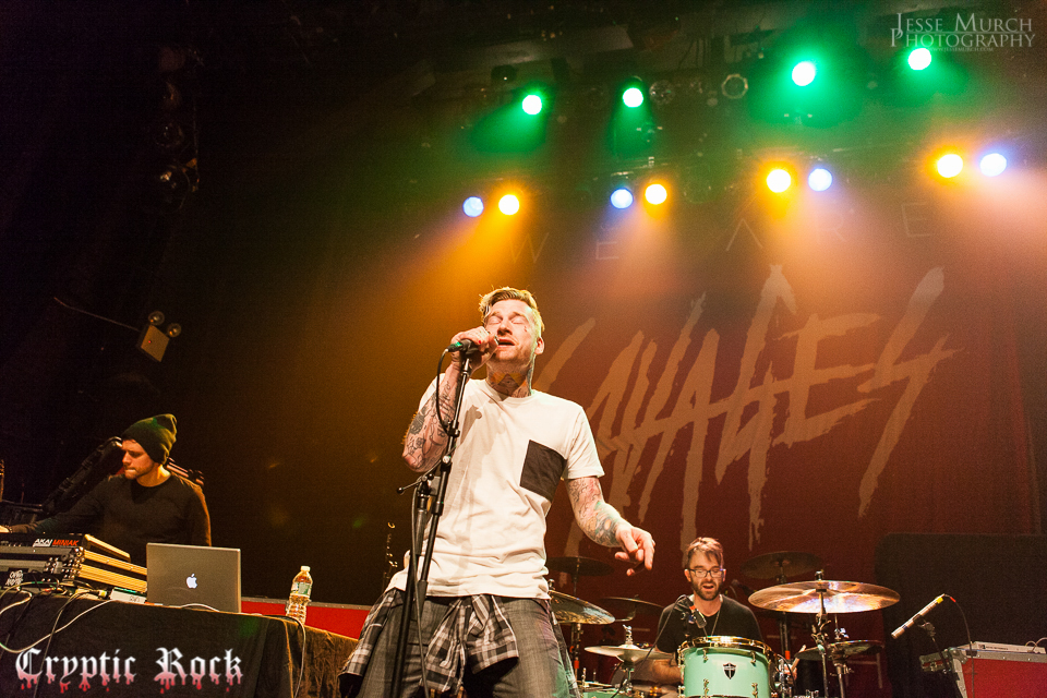 Firing in with a mix of electronic and rock, Ghost Town got busy on stage next with entertaining riffs, powerful drums, and the refined vocals of frontman Kevin Ghost. Coming from Hollywood, CA these men are no strangers to glitz and glam lifestyles and what it takes to make it in this world. The combination of the aforementioned Kevin Ghost with Evan Pearce (electronics), Alix Monster (guitar/vocals, and MannYtheDrummeR (drums) mix extremely well for this band’s invented style. Their performance was quite a pleasure for ears and eyes as they made their way around the stage and kept the energy soaring. Fans seemed very pleased with their entire set and cheering grew with each song performed. Keeping themselves busy over the next few months, Ghost Town will be taking part in the ‘Red, White, & Black Tour’, then head over to the United Kingdom in May, returning to North America for ‘Van’s Warped Tour’ this summer.