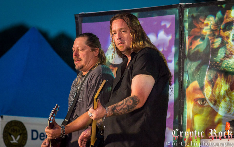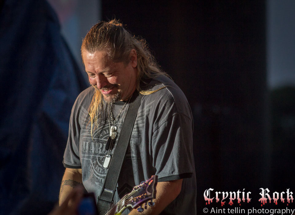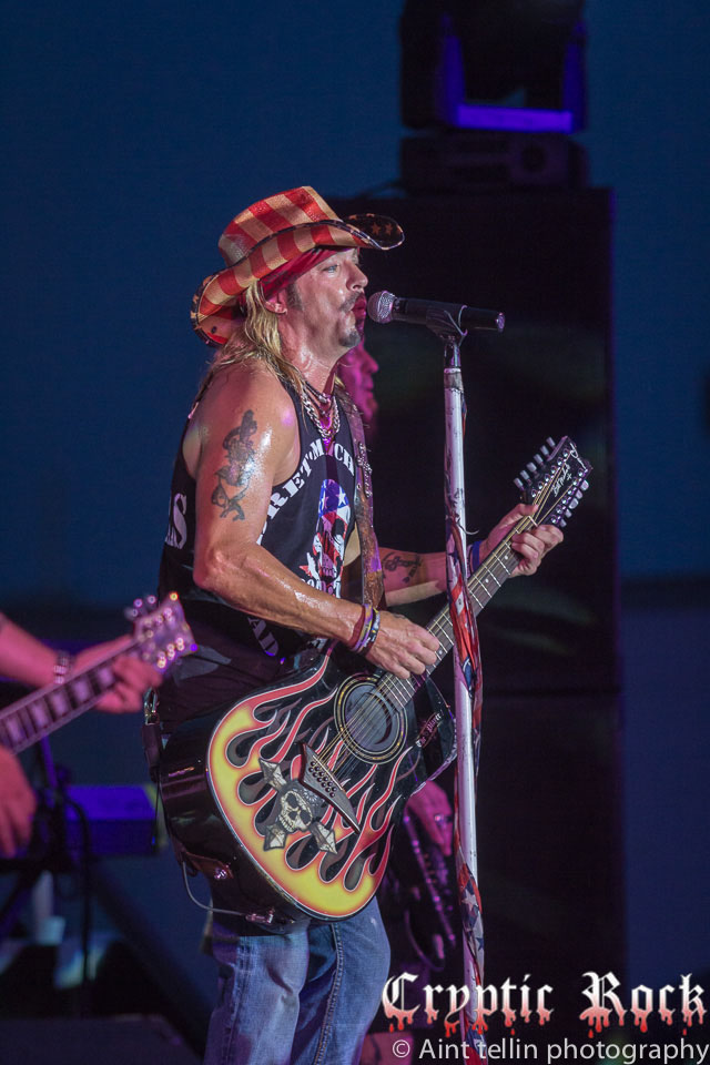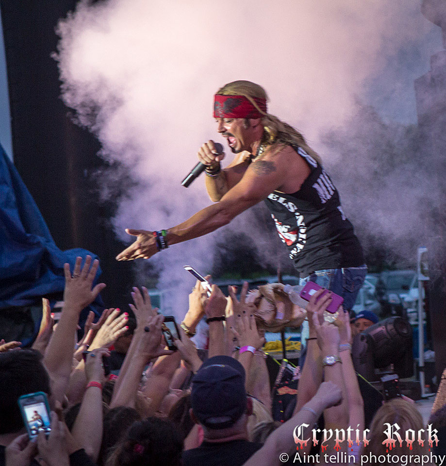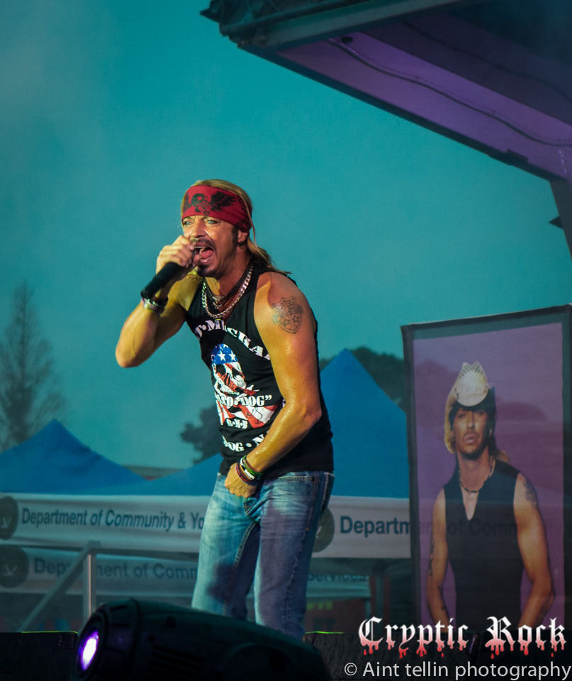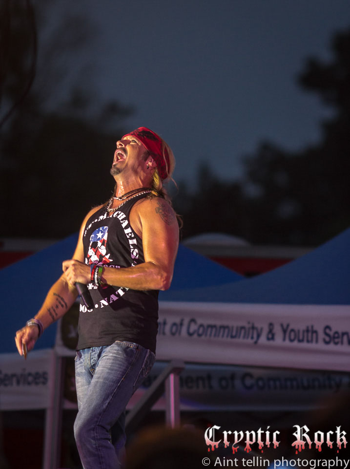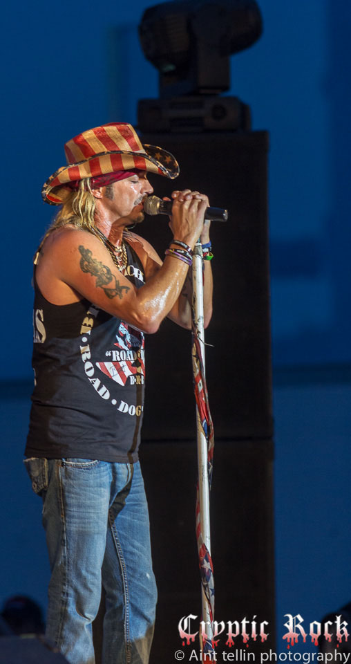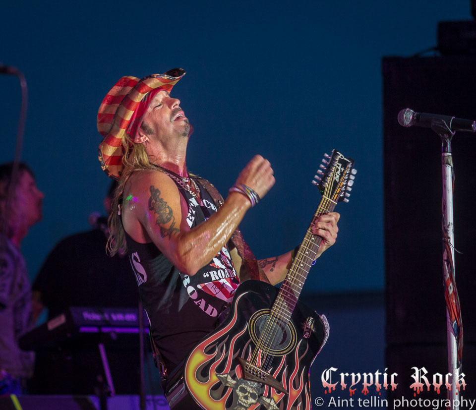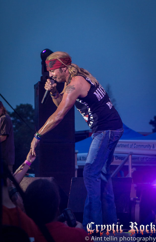 After a brief introduction from local representatives, Michaels and his band came out with many rushing to the front to get closer to the action. Starting off with the Poison tune “Talk Dirty To Me”, the mix of heavy guitars and Michaels’ soaring vocals filled the air with excitement. Proclaiming his love for Long Island, the audience responded with screams so loud they could be heard miles away. Playing the classic Lynyrd Skynyrd track “Sweet Home Alabama”, Michaels broke out his blues harp, aka harmonica, and kept the party rolling. Projecting a sense of enthusiasm into the crowd, Michaels and his band went into “Your Momma Don’t Dance” and another rocker in “Look What The Cat Dragged In”. At this point fans could care less about the raindrops, which began to collect at a faster rate, as they were enthralled by the stage presence of the band.