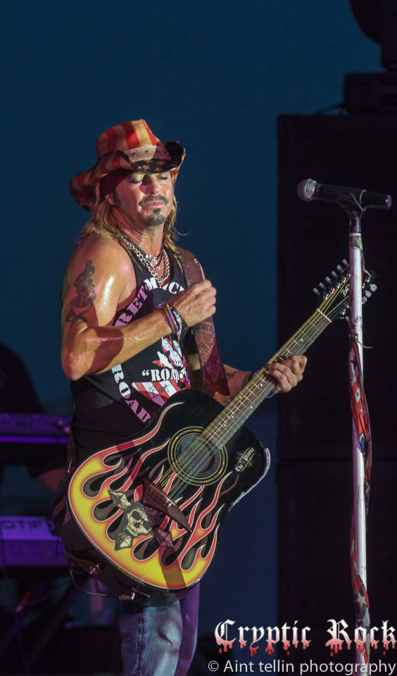 One of rock’s most beloved vocalists, Bret Michaels, continues to partake in heavy touring in 2014 with the Life Rocks Tour. With the success of his solo album, Jammin’ with Friends (2013), this is the second consecutive year the singer hits the road alone with the last Poison tour being the Rock of Ages Tour in 2012 with Def Leppard and Lita Ford. Keeping fans satisfied and hungry for more, Michaels made a return to Long Island, NY for the third time in a year; this time performing at John J. Burns Park in Massapequa as part of the Music Under The Stars 2014 free concert series. Disregarding the threat of heavy rain in the forecast, thousands of people showed up at the park grounds Monday July 14th with blankets and lawn chairs ready for a good night of rock-n-roll.
