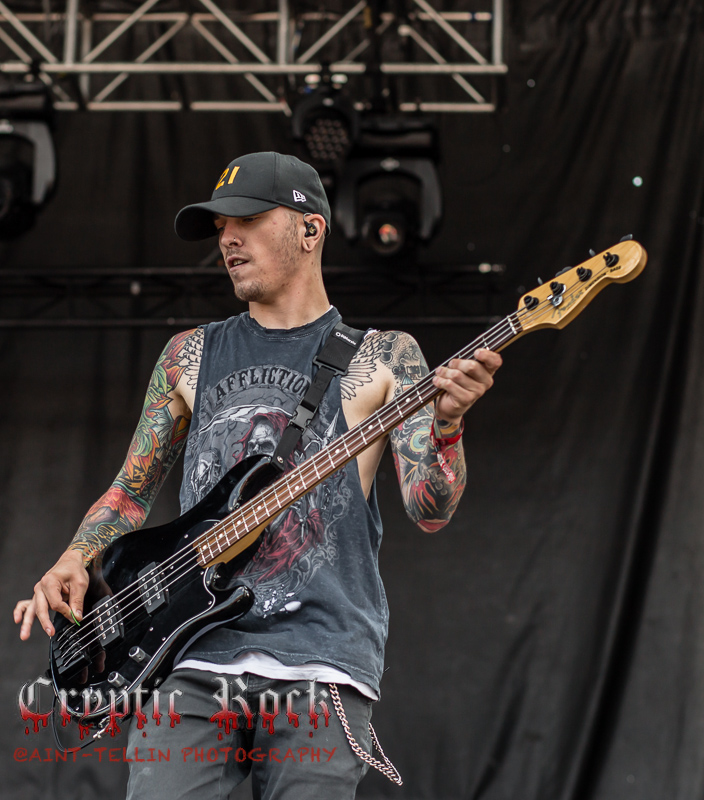 Preparing for a explosive show, Jerod Boyd stood on his drum throne and took it all in. Then, when Vocalist Levi Benton, Guitarists B.J. Stead and Justin Aufdemkampe, along with Bassist Ryan Neff came together onstage, they went into the fast track “I.H.E.” Running across the stage delivering brutal vocals, Benton said, “We like to start early.” With that, he called for a Wall of Death, to which the crowd spread apart and, on cue, ran toward each other as the band hammered out “Turn Back The Time.” Never letting up on the onslaught, Miss May I went into “Masses of a Dying Breed,” “Hey Mister,” “Deathless,” and “Relentless Chaos.” Working the crowd into a frenzy, Miss May I gave one of the more memorable performances of the early day.