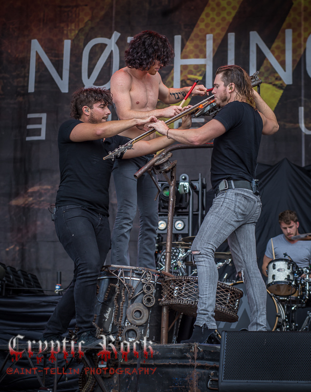 Taking the stage, a shirtless Hawkins began with “Christ Copyright” on a drum set near the front of the stage. Soon joined by Anderson on the drums, the intro had a heavy, syncopated groove, driving hard into the hearts of the audience. Capitalizing on that emotion, the band went into “Mr. MTV” with its full-on funky groove, hooky chorus, and meaningful lyrics. A performance full of a lot of energy, the highlight of the set came as the band converged around a bass guitar suspended on a stand. One by one, with exception of Anderson, they began to play the bass. First Oliver, then Vollelunga, and finally Hawkins joined in with drumsticks adding a percussive element, all the while Anderson provided the beats. Then for the popular song “Jenny,” Hawkins asked if anybody knew any Jenny’s out there, to which he sang the intro with guitar accompaniment, before the full-on instrumental assault. Next was a new song, entitled “Ripping Me Apart,” before “Ocean Floor,” and “This Is The Time (Ballast).” Closing with “Salem,” the adrenaline rush was sky-high as the crowd yelled “Burn the Witch!” in response. All in all, Nothing More showed a lot of musicality and diversity in their style, putting forth a strong, interesting set.