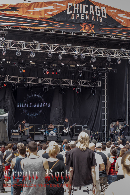 Moving over to the main stage, Canadian American Hard Rock group Saint Asonia was just about to get started. Coming together back in 2014, Saint Asonia features an all-star lineup consisting of former Three Days Grace vocalist Adam Gontier, Staind guitarist Mike Mushok, Eye Empire bassist Corey Lowery, and former Finger Eleven drummer Rich Beddoe. Already on the road with Alter Bridge, Breaking Benjamin, and Disturbed, Chicago Open Air marked one stop on their massive summer tour across the US and Canada.