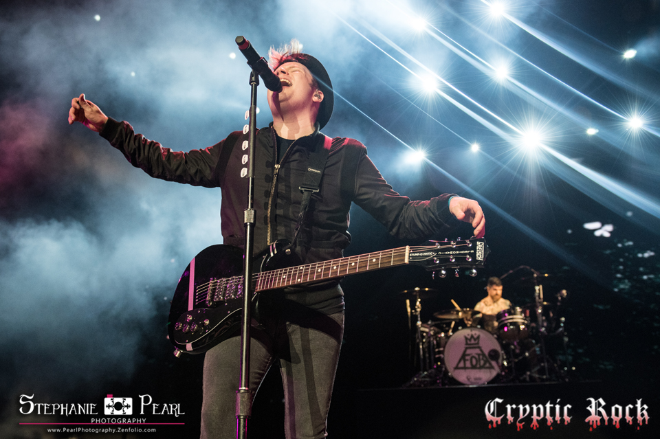 With such a large selection of tunes to choose from, the setlist ranged from old to new, starting with the unforgettable “Sugar, We’re Going Down” and moving into Save Rock and Roll’s “The Phoenix.” Stump’s incredibly ranging vocals and the band’s overall energy was reflected off of the crowd’s obvious thrill of their presences as they played on with new song “Irresistible” and classic, “A Little Less Sixteen Candles, a Little More ‘Touch Me’.” Bouncing around the stage from side to side amping up the crowd even more, they made eye contact with many fans, and jammed right into the beautiful “Alone Together” and irresistibly danceable “This Ain’t A Scene, It’s An Arms Race.”