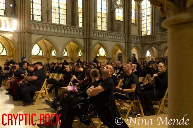 With their debut album, Vater, in 1998 and their sophomore album, Schlafende Hunde, in 2000, they embarked on their only tour in the typical context in 2001. Since then, they have sought out unique venues and concepts that complement their distinctive sound. And successfully so. They became an exclusive insider tip amongst gothic fans. This performance at Peterskirche on June 9th, as part of WGT, along with their previous two performances within less than 24 hours, is a perfect example of this exclusivity. So it was no wonder that the entire place in front of the church was crowded with fans. The chaired chapel would not accommodate everyone outside, but those who managed to get inside and secure a chair were in for a wonderful experience that would later move them to tears.