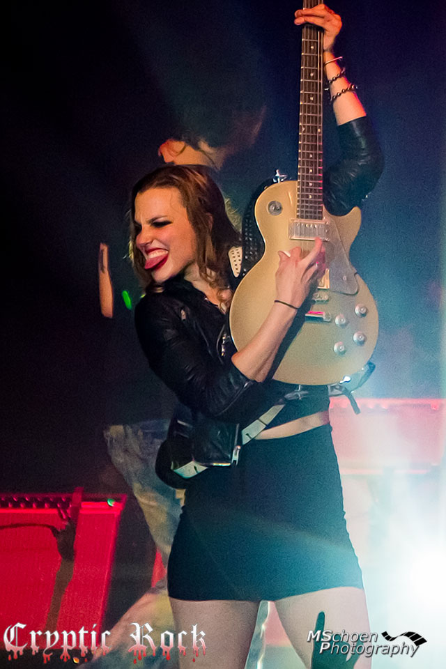 Taking the stage at 10:00 PM sharp, and opening with “Mz. Hyde,” Halestorm set the tone for the night with the hard charging number. Beginning with a menacing bass and drum intro, “Mz. Hyde” features a classic sounding hard rock riff, great backing vocals, and Lzzy’s mix of sweet singing and fiery growls. It was a fitting introduction for the uninitiated and included all the ingredients that make Halestorm so appealing to so many. The band continued to charge hard over the next four tracks which included “Freak Like Me,” “It’s Not You,” ”You Call Me Bitch Like It’s a Bad Thing,” and a cover of Judas Priest’s “Dissident Aggressor.” Their adrenaline filled approach was greeted in kind by the crowd as the main floor, devoid of seats, was a sea of head banging and fist pumping. Showing immense ability, Hottinger was the star of this run as his solos took center stage throughout, mixing power chords and fast-paced picking over tight rhythms.