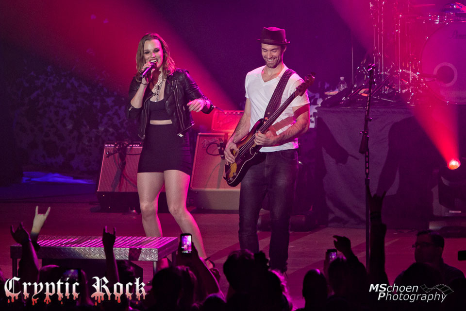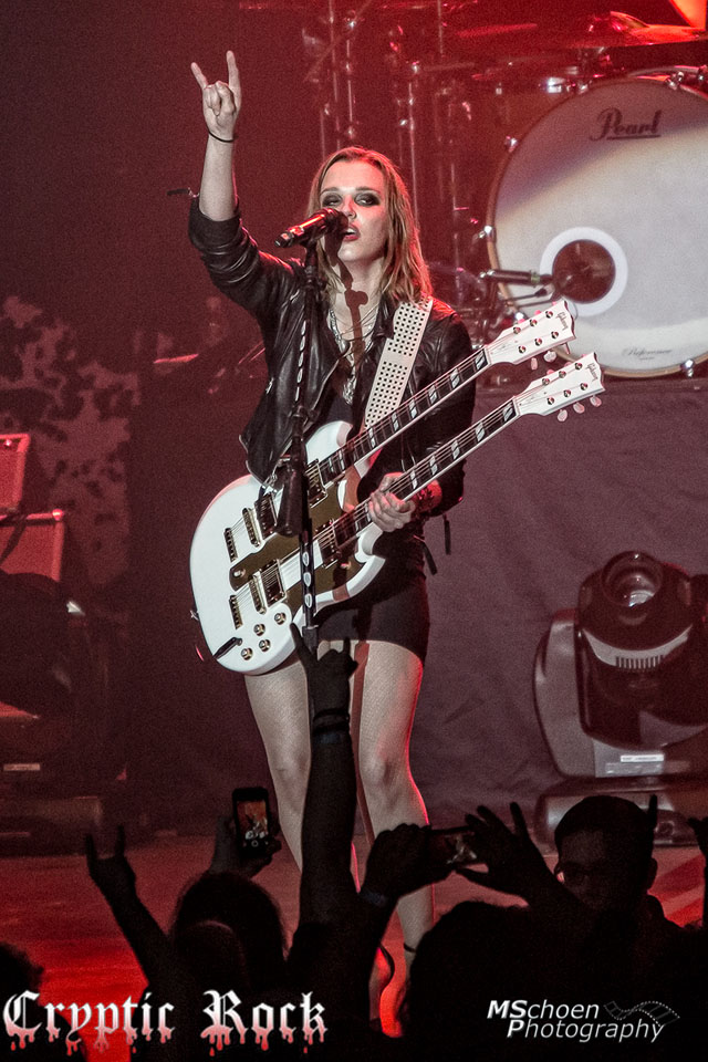 For the next group of tunes, as they played “Innocence,” ”Rock Show,” and “Familiar Taste of Poison,” Halestorm offered up their melodic side, emulating the best of melodic Hard Rock stalwarts like Def Leppard and Sammy Hagar era Van Halen. Showing Hottinger is not the only guitarist with great finger work in the band, Lzzy torched a solo on electric guitar to a roaring ovation during “Hate It When You See Me Cry.” Opening up to the audience, Lzzy told the story of how the song originally came to life, which included her downing a bottle of wine, quickly recording it alone and sending it off to her producer. A full band version was included on the deluxe version of The Strange Case Of…, but tonight the crowd got to hear it as it was originally intended. Here, Lzzy demonstrated her wide vocal range, sounding like a crooner and a Heavy Metal priestess over the course of the tune.