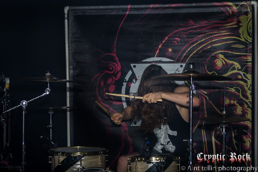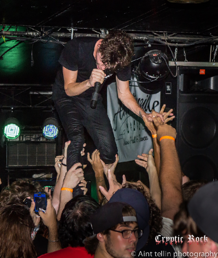 The Amityville Music Hall was now drenched in the heat and sweat of the night when headliners I Prevail were ready to begin their set. Recently getting off a successful tour supporting Amaranthe, I Prevail showed no signs of exhaustion, and seemed inspired to have the headlining tour to call all their own. Without further ado, the vocal duo of Burkheiser and Vanlerberghe came out screaming, opening with the single “Enemy.” Hyping the crowd up, everyone instantly started jumping, moshing, and creating total havoc during EP title track, “Heart Vs. Mind,” “Face your Demons,” and “Deceivers.” About halfway thru their set, the drums of Runestad was driving the band so hard that he broke his kick pedal. While waiting to get a new pedal, entertaining the crowd, the band broke out into a sing-a-long, which believe it or not, was a tune from Disney’s 2013 blockbuster Frozen. With laughs abound, when they were done, the band stated, “Now that is sure to go viral.” With a new pedal in place, they got back to business and continued the onslaught with their popular rendition of “Blank Space,” “Crossroads,” and another single, “Love, Lust, & Liars.” Having the room at the height of exhaustion, “Chicken Tenders” closed the amazing set with the audience throughly satisfied with the adrenaline pumping performance.