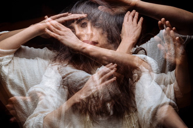 “Binary” plays with numbers and quantum mechanics to defy time and physical space, and create a love outside of definition, a love that transcends time. While its sonics often race like a sped up clock, they also pulse like a racing heart to add a frenetic energy to K Á R Y Y N’s always gentle vocals. Next, the haunting “Ambets Gorav” clocks in at just under six minutes and balances atop a whispery soft vocal in Armenian.