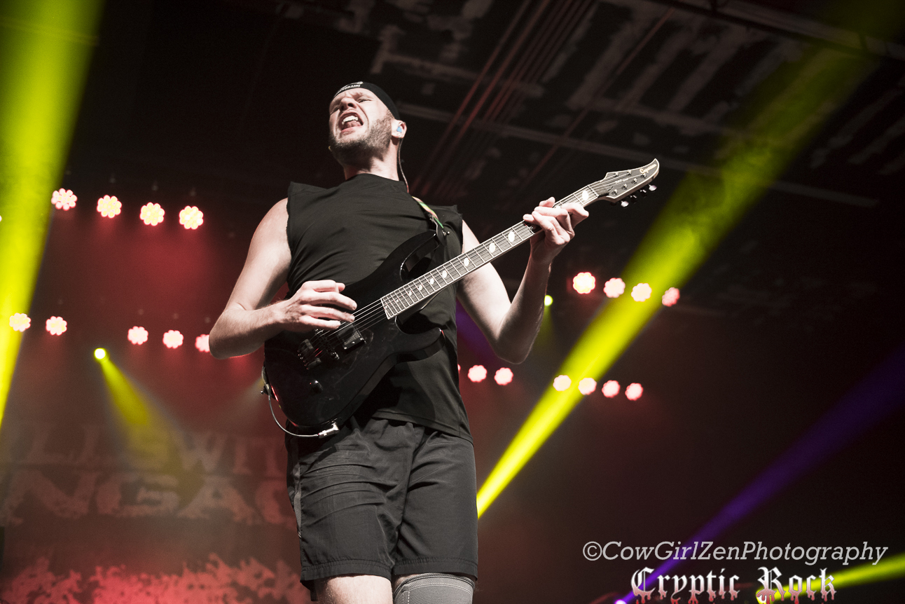 Having the floor moving, whether it be moshing, headbanging, or just singing along, all the cell phones were out and recording as they went into new favorite, “Alone I Stand.” Sprinkling in other undeniable songs such as “Just Barely Breathing,” “Take The Oath,” and “Temple From the Within,” Killswitch Engage weaved in and out of their long list of songs with ease while hitting all the right cords in the hearts of listeners. Then taking it to the melodic Metal side, they went into “Just Let Go” before picking the speed right back up with “Rose of Sharyn” as the audience sang along, “…What would I give to behold. The smile, the face of love? You never left me. The rising sun will always speak your name…” A chilling moment, the power of breakdowns in this song and throughout the set split the sanctity of the night.
