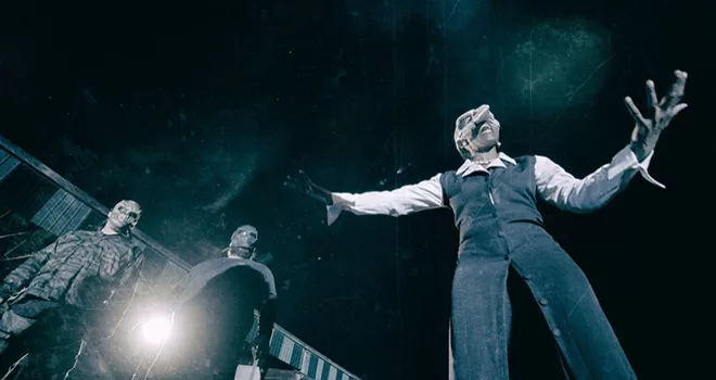 Rewucki really takes advantage of his locations too. Rotting, rusty infrastructure fills the ghostly town. It feels abandoned despite the presence of a few colorful locals. Rewucki also relies on imagery within his world to tell the story. The dialogue is sparse in Tempus Tormentum, suggesting a confidence that viewers willing to take the dive may discover a truth or two hidden underneath the thriller’s surface. That is definitely Rewucki’s goal. He wants audiences to get lost in the film. The story, somewhat thin, mostly just follows Mr. Mouse as he tries to get away from his masked adversaries. Tempus Tormentum more resembles a fever dream or a psychedelic trip. This is not a film with a traditional narrative structure.