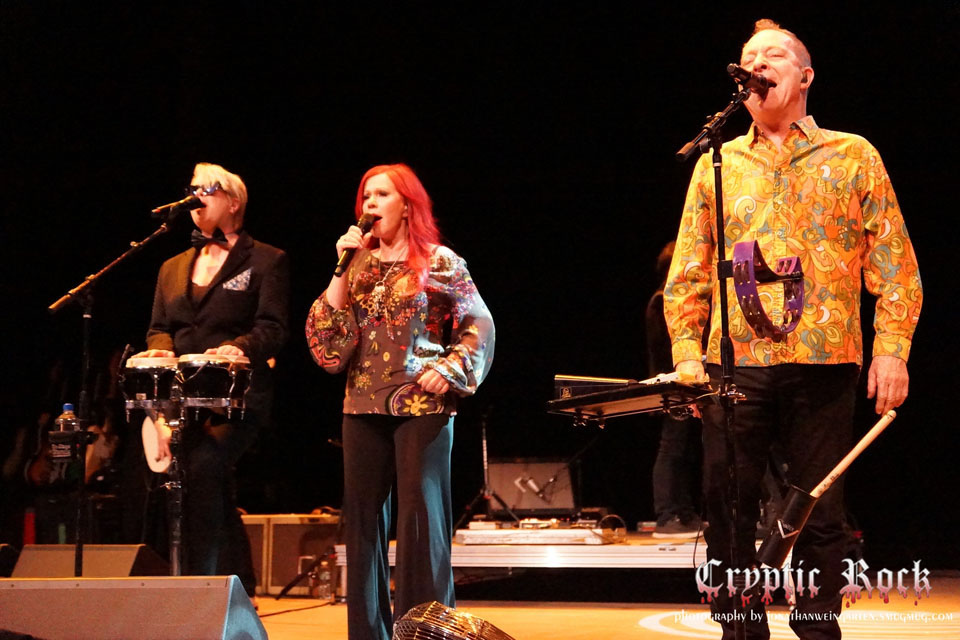 Later on, “Party Out of Bounds” gave The B-52s another chance to showcase the dynamic singing of all three vocalists along with the relentless pursuit of a good time. Their unyielding momentum and ability to provide the impetus for the crowd to move their feet was simply remarkable. “Love In The Year 3000” continued the party theme with a bouncy soundtrack, handclaps, and Schneider sounding like a droid itching to break out and dance as he droned, “Take off your helmet you spacy thing/In freefall we’ll shimmer and shine/You got me spinning like Saturn’s rings/it’s a galactic love in future times.” “Is That You Modean” and “Planet Claire” were the ideal followers to “Love in the Year 3000” as Schneider and Pierson sang about being abducted by a UFO and an alien planet, respectively. This type of quirky theatrical was not lost on the audience, and in fact, everyone adored it. “Planet Claire” featured music seemingly ripped from a bad 1950’s Science Fiction movie, and it was an absolutely perfectly icing on the three song cake displaying the band’s propensity for, no matter what, letting a loose, care-free, exuberant take on the music to be paramount to typical song structure, technical playing, and overused subject matter.