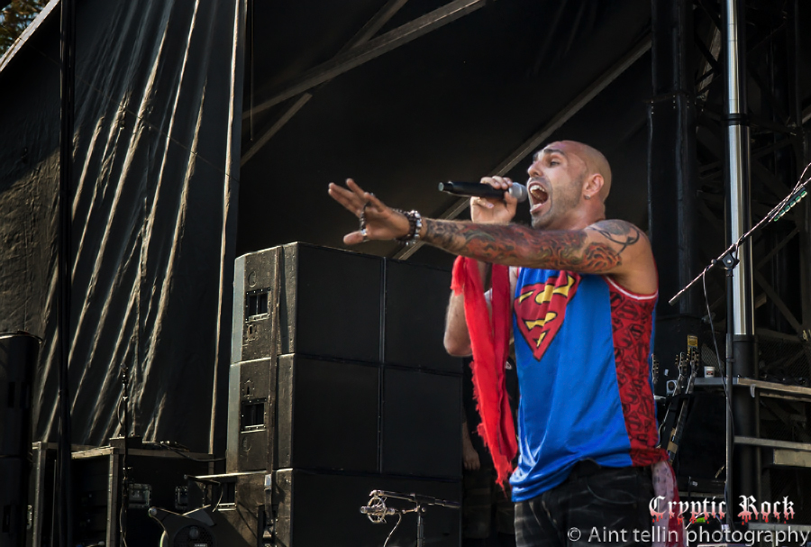 Tackling Main Stage 2 at 3:45 PM were Las Vegas Rockers, Otherwise. Formed in 2006, they have released three studio albums including the latest, 2014’s Peace at All Costs via Century Media Records. Adrian Patrick (lead vocals), Ryan Patrick (guitar/vocals), Corky Gainsford (drums/vocals), Andrew Pugh (guitar vocals), and Tony Carboney (bass/vocals) presented an immense amount of energy to the New Jersey crowd. Ready to rock with loud aggression, Adrian sprung onto the stage wearing a Superman shirt, holding a red cape-esque flag, and an American flag running down his pants. Marching in during “Love & War,” from Peace At All Costs, sparked the crowd’s attention. Adrian conversed with the Jersey audience by asking if this was a Bruce Springsteen country as he demanded all to put their horns and arms up in the air and proceeded into “Die For You,” from 2012’s True Love Never Dies.