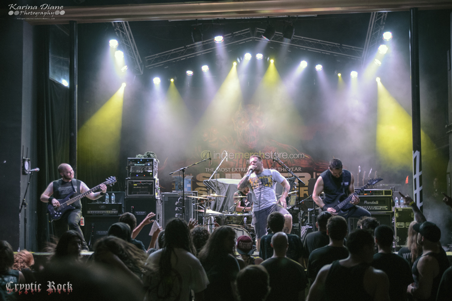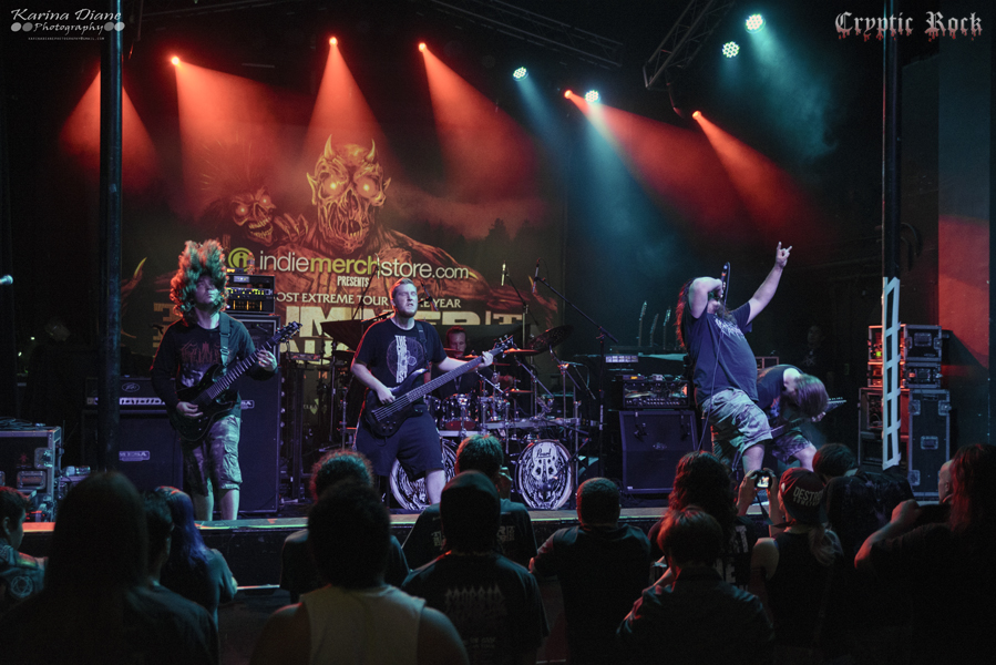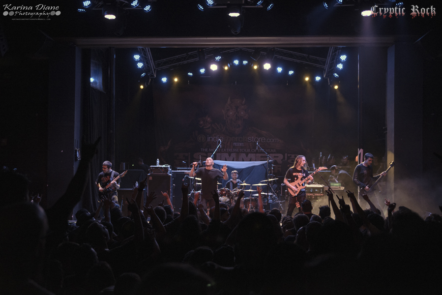 Up first was progressive death metal band Boreworm took the stage. Hailing from Michigan, the band excited the crowd quickly with technical death metal and melodic riffs. Winning the “Headbang For The Highway” National Competition in order to join The Summer Slaughter Tour, it was no surprise of how solid this band really sounded. Their Black Path EP is out now.