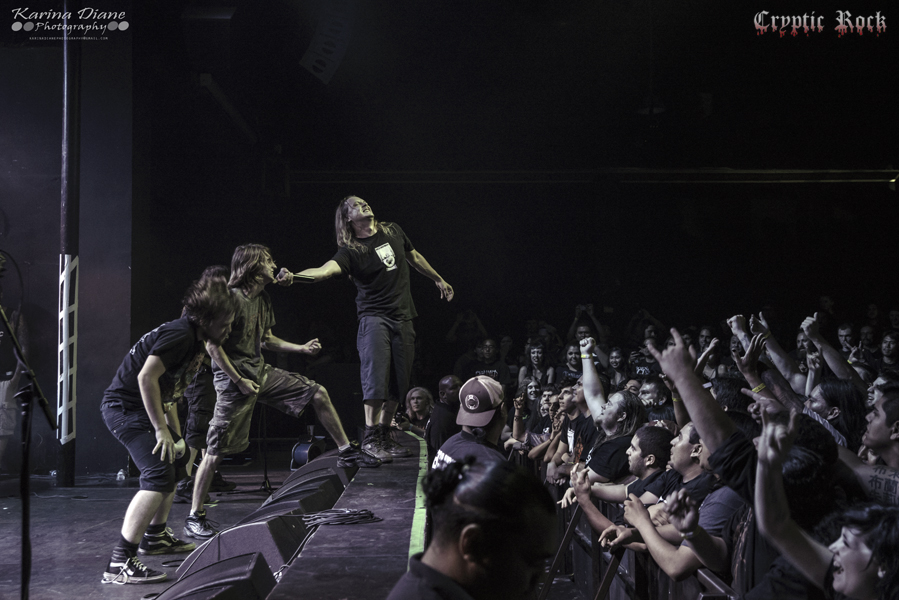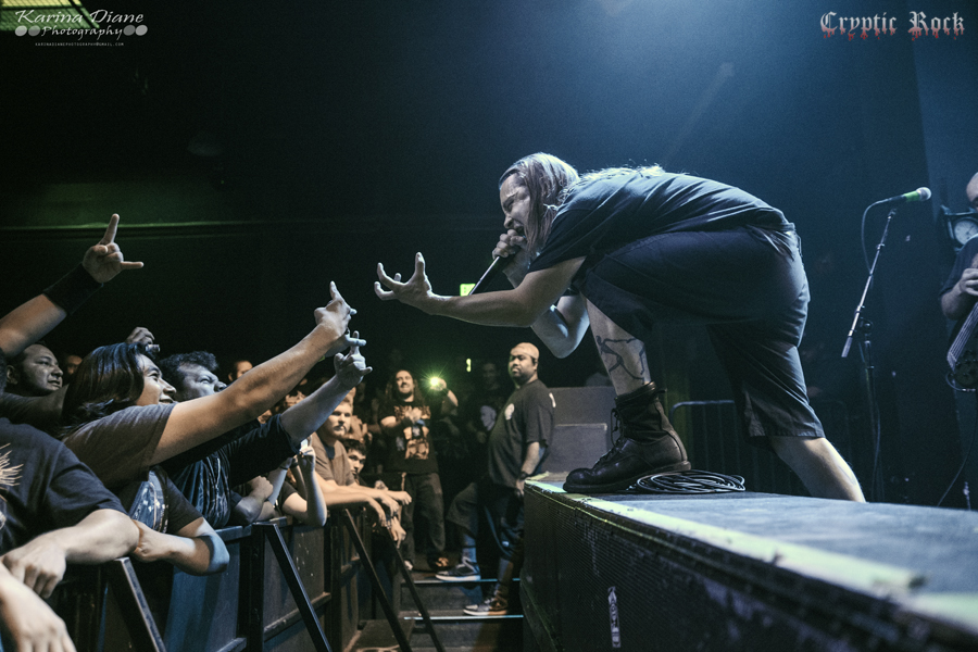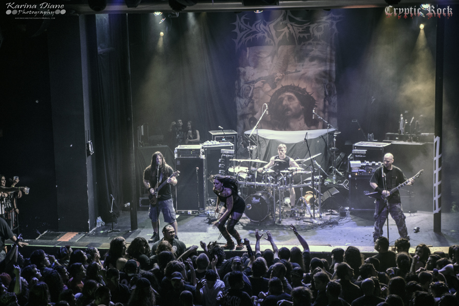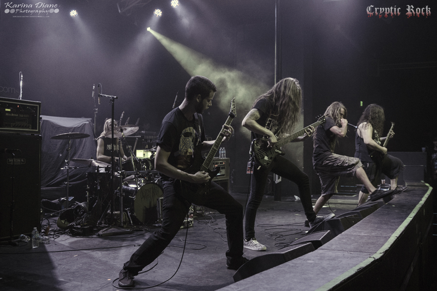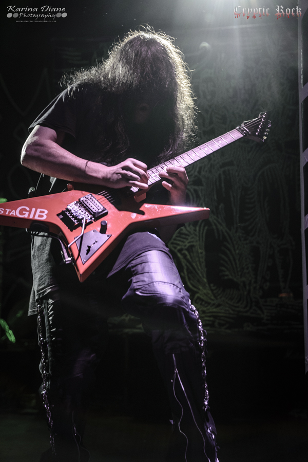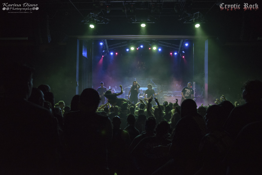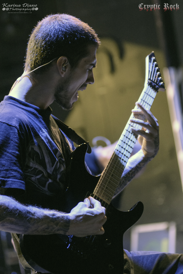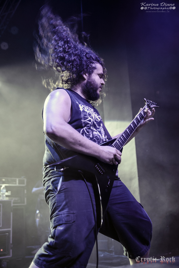 Next was San Francisco Bay Area band Fallujah. Comprised as an atmospheric death metal quintet that has been touring heavily lately supporting acts like Broken Hope, they have been winning over new fans wherever they step foot. With a new album titled The Flesh Prevails released just a few days after this performance, they seemed extremely pumped to put on a good performance for this crowd. Creating dark atmospheres combined with great melodic guitar riffs, Fallujah managed to captivate their audience once again with a technical sound on songs like “Cerebral Hybridization” and “Assemblage of Wolves”. Keep an eye open for this fast rising band.