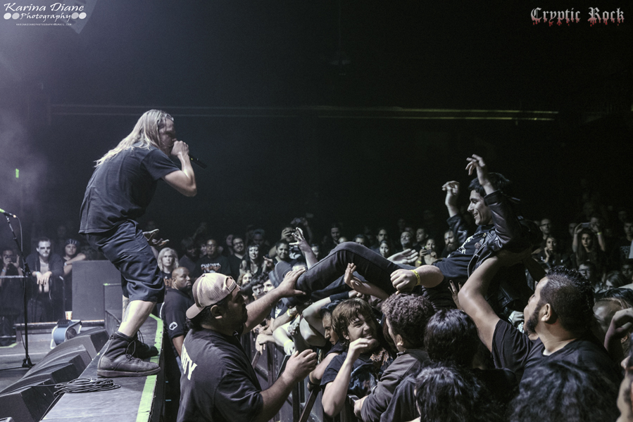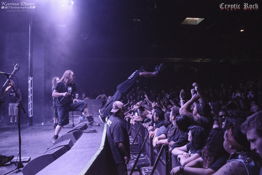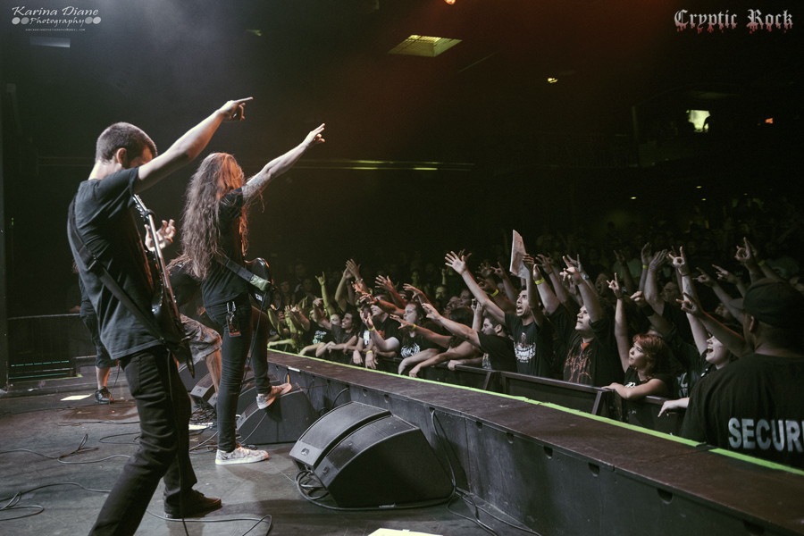 Sticking with the technical death metal genre, but a bit on the heavier end of the spectrum, was Topeka, Kansas’ Origin. The band recently released their sixth studio album Omnipresent, which garnished much praised from their fan and critics alike. While pits and headbanging were present for most of the show, the crowd went absolutely insane after Origin’s request for a silent wall of death before they proceeded with their set. Vocalist Jason Keyser did an incredible job getting his audience involved in Origin’s performance, provoking stage diving and for people to just got nuts. Through the six song set including tracks like “Expulsion Fury” and “The Aftermath”, as many as five fans at a time were surfing their way up to the front of the stage to yell out lyrics into Keyser’s microphone. Closing with new track “Unattainable Zero” Origin exhibited exactly how technical death metal should be delivered.