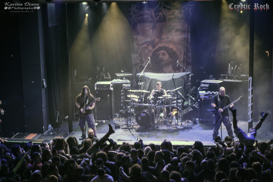 With the evening winding down, it was time for Dying Fetus to terrorize the crowd. The Maryland Trio, consisting of guitarist/vocalist John Gallagher, bassist/vocalist Sean Beasley, and drummer Trey Williams, have been on the scene since 1991 while blasting out seven studio albums. As a veteran to the extreme metal, this band always manages to put on an epic performance; keeping the crowd engaged from start to finish.