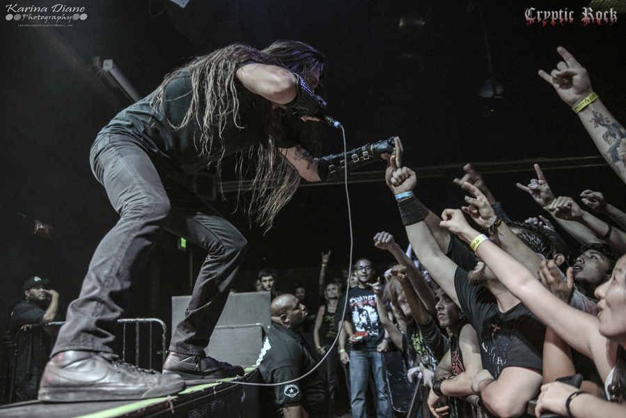 Following was New Orleans, LA band Goatwhore. As a fan-favorite showcasing some old-school extreme metal, the anticipation was peaking all around The Observatory. Debuting at #81 on Billboard Top 200 with their recent release of their sixth studio album Constricting Rage Of The Merciless on Metal Blade, the band has been shattering ear drums across the nation. With a set consisting of primarily new material, the band threw in some of their older classics like “Apocalyptic Havoc”. Frontman Ben Falgoust was like a tornado on stage as he belted out blackened vocals that shook the ground. Goatwhore definitely kept the pits moving and put on one of the best performances of the night.