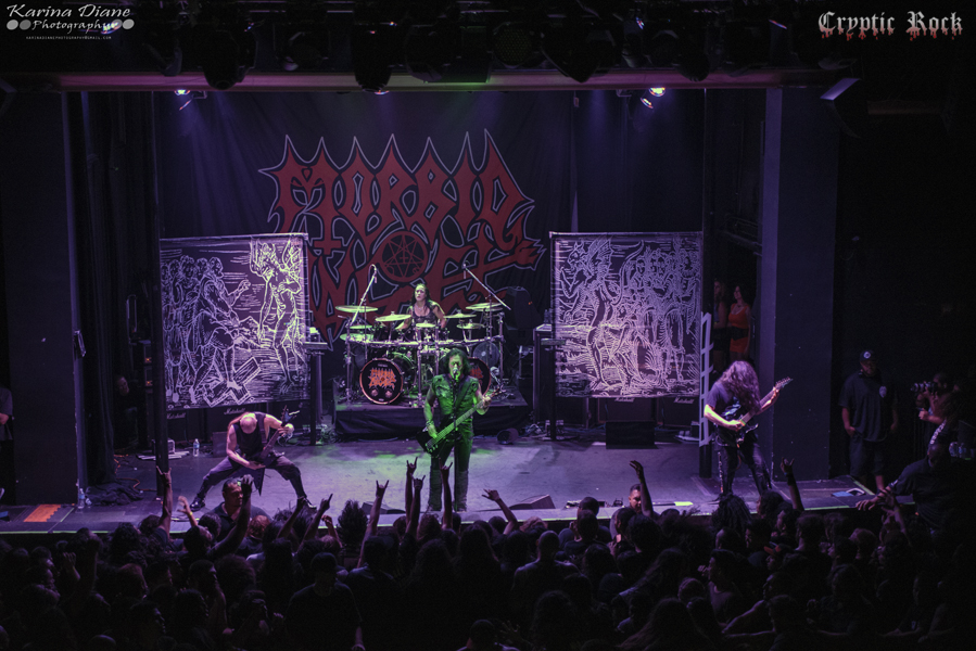 Ending the journey of metal battery was none other than the holy trinity of death metal, Morbid Angel. As one of the pioneers of American death metal, the band is celebrating their thirtieth anniversary in 2014. With so much history evoked in their time creating music, they also recently celebrated the twentieth anniversary of their landmark album Covenant. Swarming the floor and clamoring for the start of the set, the anxiety level was high all over The Observatory.
