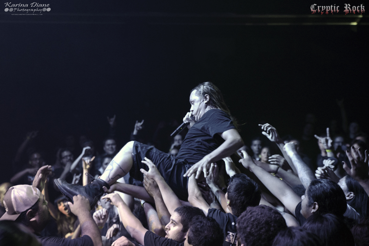 Hailing from the Land of Down Under, Australian deathcore band Thy Art is Murder pillaged the stage next and played an absolutely crushing set. Together now since 2006, the band’s popularity has grown rapidly over the years and was even the first extreme metal band to reach the Top 40 Australian charts with their album Hate in 2012. With chaos breaking out, fans were stage diving at exhilarated speeds with little to no concern for injury. Playing material from all over their catalogue, the band showed just how to get a crowd going on songs such as “The Purest Strain of Hate” and set closer “Reign of Darkness”.