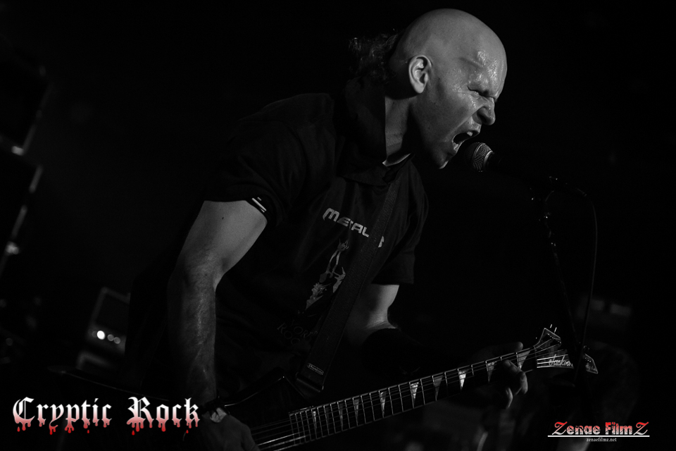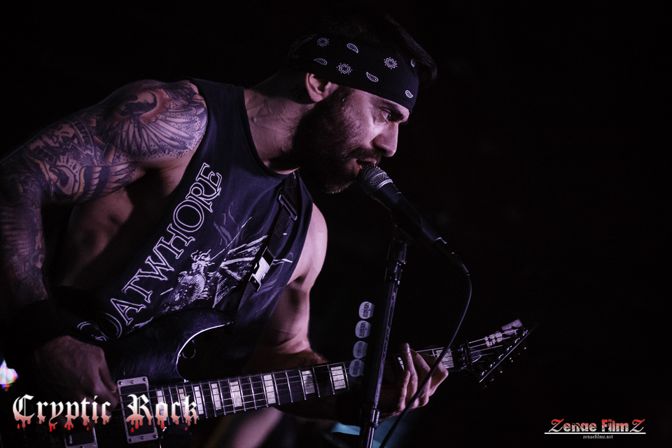Known for ongoing lineup changes where Frank “Killjoy” Pucci is the only original member, he and his pack were ready, along with a beautiful collection of human remains. The introduction brought chills to the audience’s spines as Killjoy walked on, carrying a bloody and ripped human head onto the platform. Moving into more bloodshed, Killjoy gripped the skeletal mic-stand as he poured out his thirst to terrify during “Bloodfreak,” from Holocausto de la Morte. Dominating the stage with a tremendous amount of energy, Killjoy moved endlessly during tracks “Dead Skin Slave,” “Upon Frayed Lips of Silence,” “Embalmed Yet I Breathe,” and the latest “Hexen Nacht.” Killjoy continued to raise body parts, including a torso and a rotted disembodied leg, as though they were part of a ritualistic experiment with a goblet filled with red liquid of sorts. Fans enjoyed this live act of terror as the set concluded with “Dead Among Us” and the ultimate finale of “Cannibal Holocaust.” Once the tour officially wraps up, Necrophagia will head back to the studio to record their next album. Rumors have sprung already with hints of it being non-stop Metal aggression, so much more for the band is in the near future.