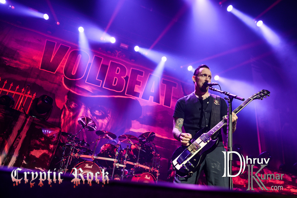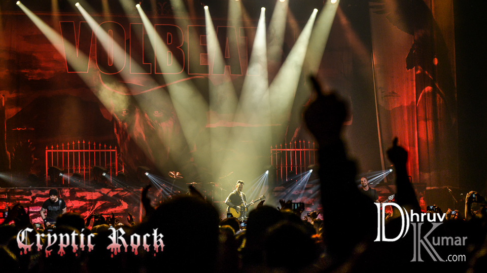 Known for their flawless lighting, energized performances, and fan-friend attitude, it was time for Volbeat to hit the stage. From Copenhagen, Denmark, this batch of Rockabillies were formed by founder Michael Poulsen (vocals/guitar) in 2001. The lineup has been consistent with Jon Larsen on drums and Anders Kjølholm on bass, however, the newest member, as mentioned, Caggiano joined up for the recording of their 2013 album Outlaw Gentlemen & Shady Ladies. Unwilling to comprise musical influences to fit a mold of a typical Metal band, Volbeat proved it can be done, and be successful. So for those who have yet to truly understand this talented band, add Metallica with Johnny Cash, Social Distortion along with Elvis Presley, and that can give a clear image of Volbeat. Flourished immensely over the years, they have reached platinum status in The States and gold in countries such as Sweden, releasing five solid albums to date. Now the band made a much welcomed return to New York where they have graciously visited countless times in recent years.